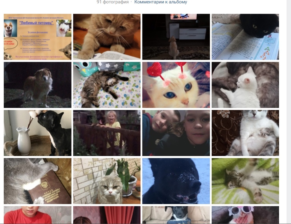 В Безменовской библиотеке завершилась сетевая фотоакция "Любимый питомец", посвящённая Всемирному дню домашних животных (30 ноября). Фотоальбом акции, который расположился в социальной сети ВКонтакте с 6 по 30 ноября собрал в себе 90 фотографий любимых питомцев читателей библиотеки. В день завершения акции сотрудники библиотеки на своей стене ВКонтакте поблагодарили всех за участие и поздравили читателей с праздником, призвав в этот день побаловать своих питомцев вкусным подарком.