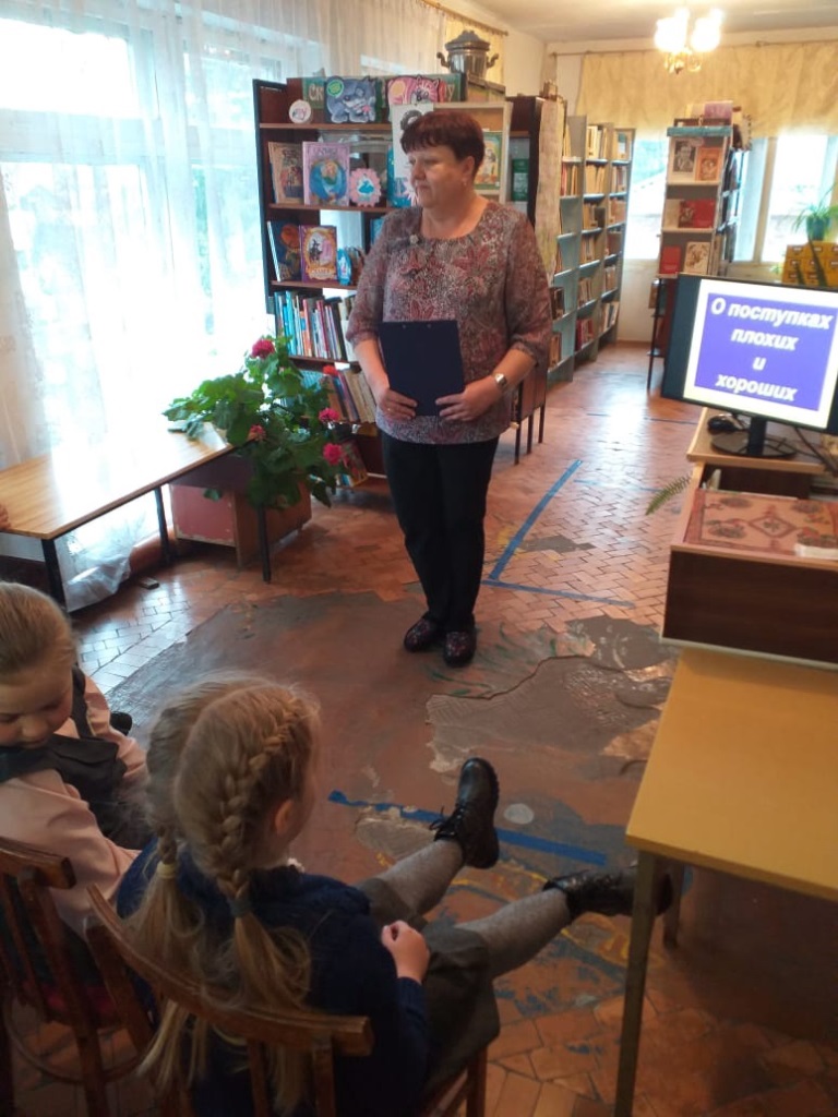 Ребята вспомнили рассказы, которые читали на уроках - «Волшебное слово», «Хорошее», «Плохо» и ещё раз их обсудили. А библиотекарь, рассказала, что есть и другие рассказы, которые полезно почитать. Ведь читая короткие рассказики В. Осеевой, учишься думать, видеть себя со стороны и оценивать свои поступки.