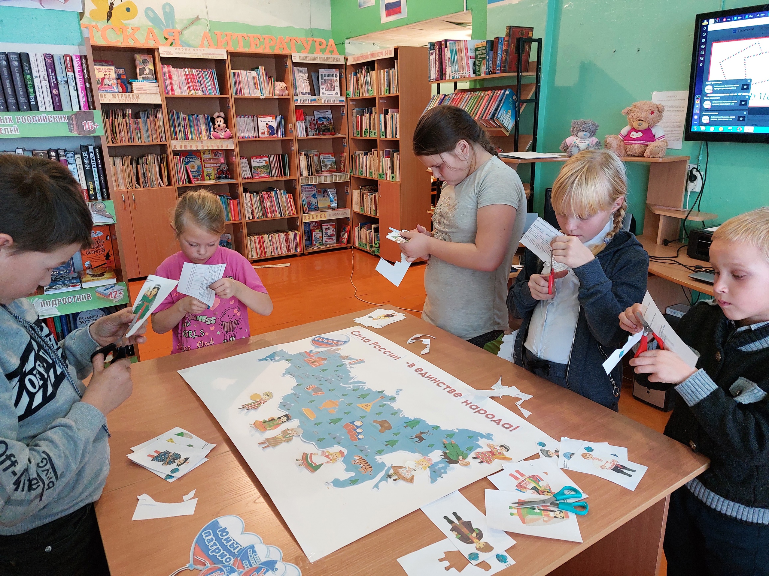 Завершился тематический день творческой мастерской, где школьники создали плакат-коллаж «Единый народ-единая страна».