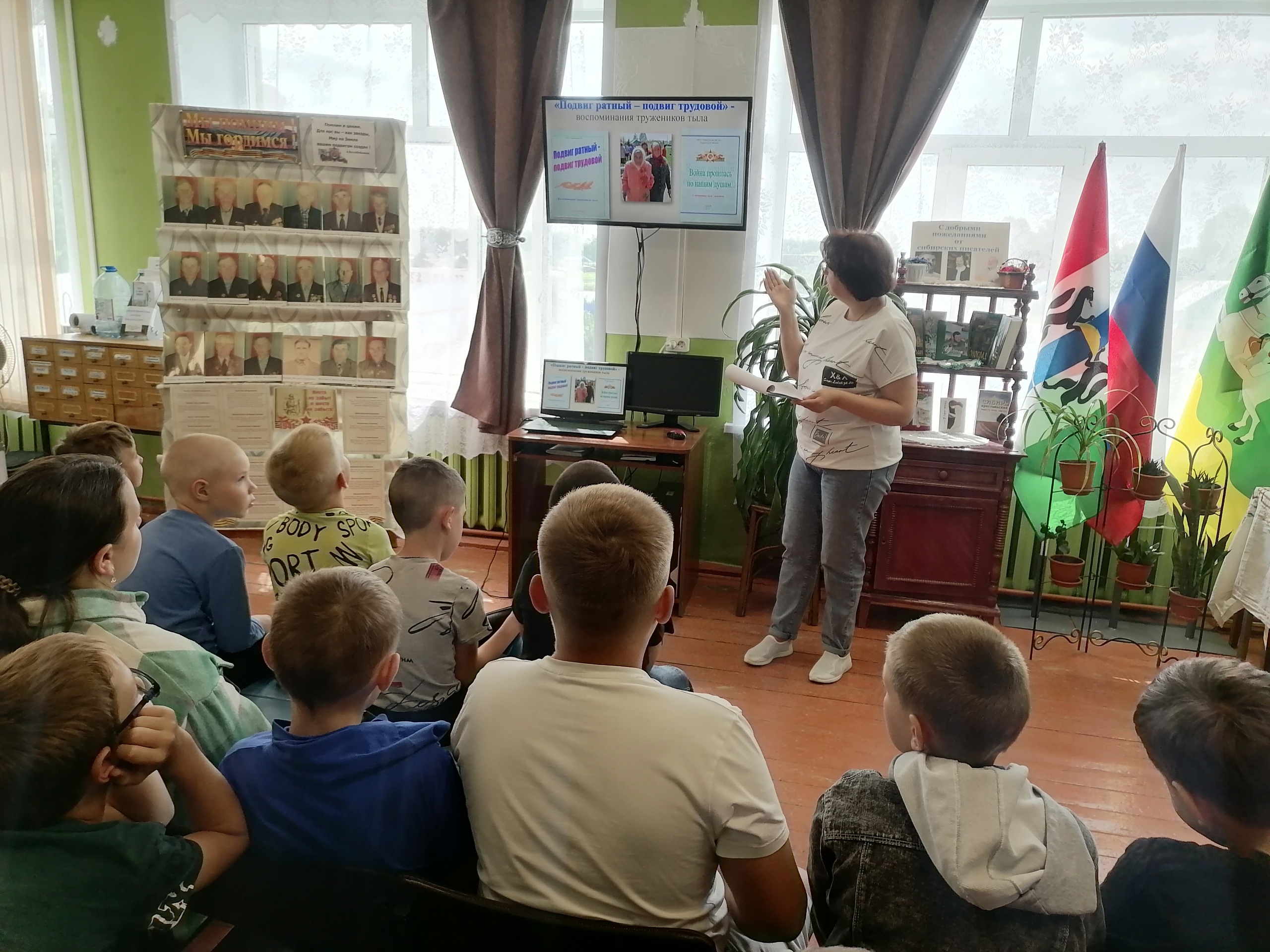 Библиотекари познакомили ребят с биографиями односельчан, ушедших защищать Родину, рассказали об их боевом пути, об их подвигах и наградах. Познакомили детей с документами, фотографиями и воспоминаниями ветеранов войны.