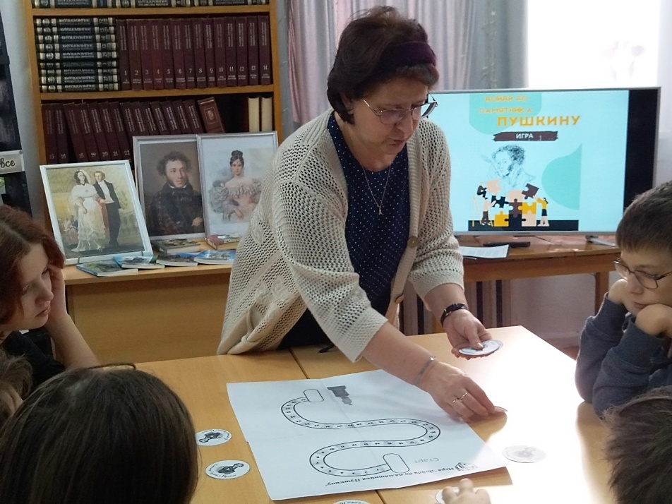 Итогом мероприятия стала настольная игра "Дойди до памятника Пушкину", в которой школьники приняли активное участие и показали свои знания, выполняя задания на игровом поле - отвечали на вопросы викторины, угадывали героев сказок Пушкина по описанию, разгадывали ребусы, вспоминали окончания фраз из сказок, стихов, отгадывали загадки.
