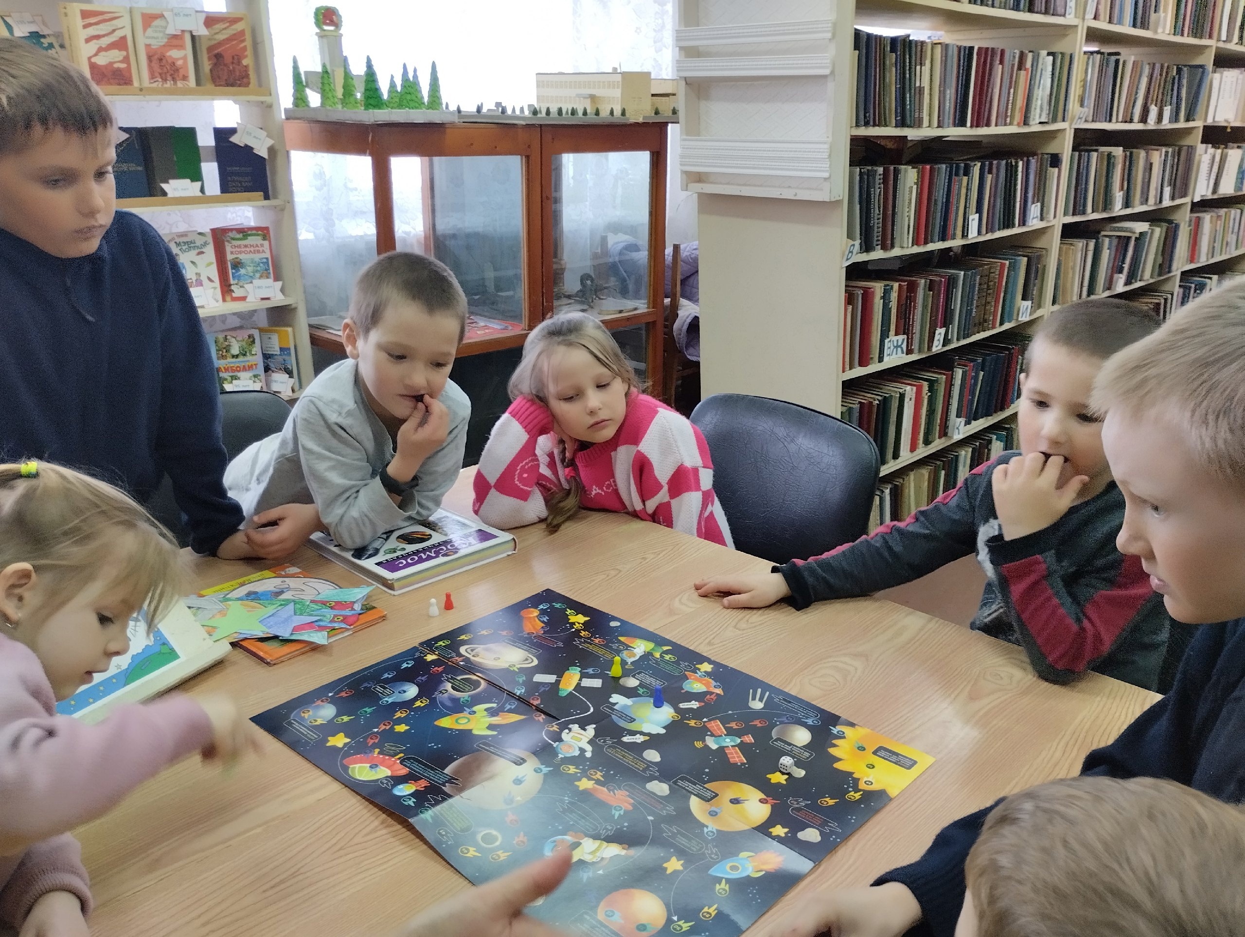 Ребята с интересом отвечали на вопросы викторины, разгадывали «звездные» загадки. Поиграли в настольную игру «Космическое путешествие». Они отлично справились с заданиями, проявив смекалку и эрудицию. К мероприятию оформлена книжная выставка «Мчатся ракеты к дальним мирам».