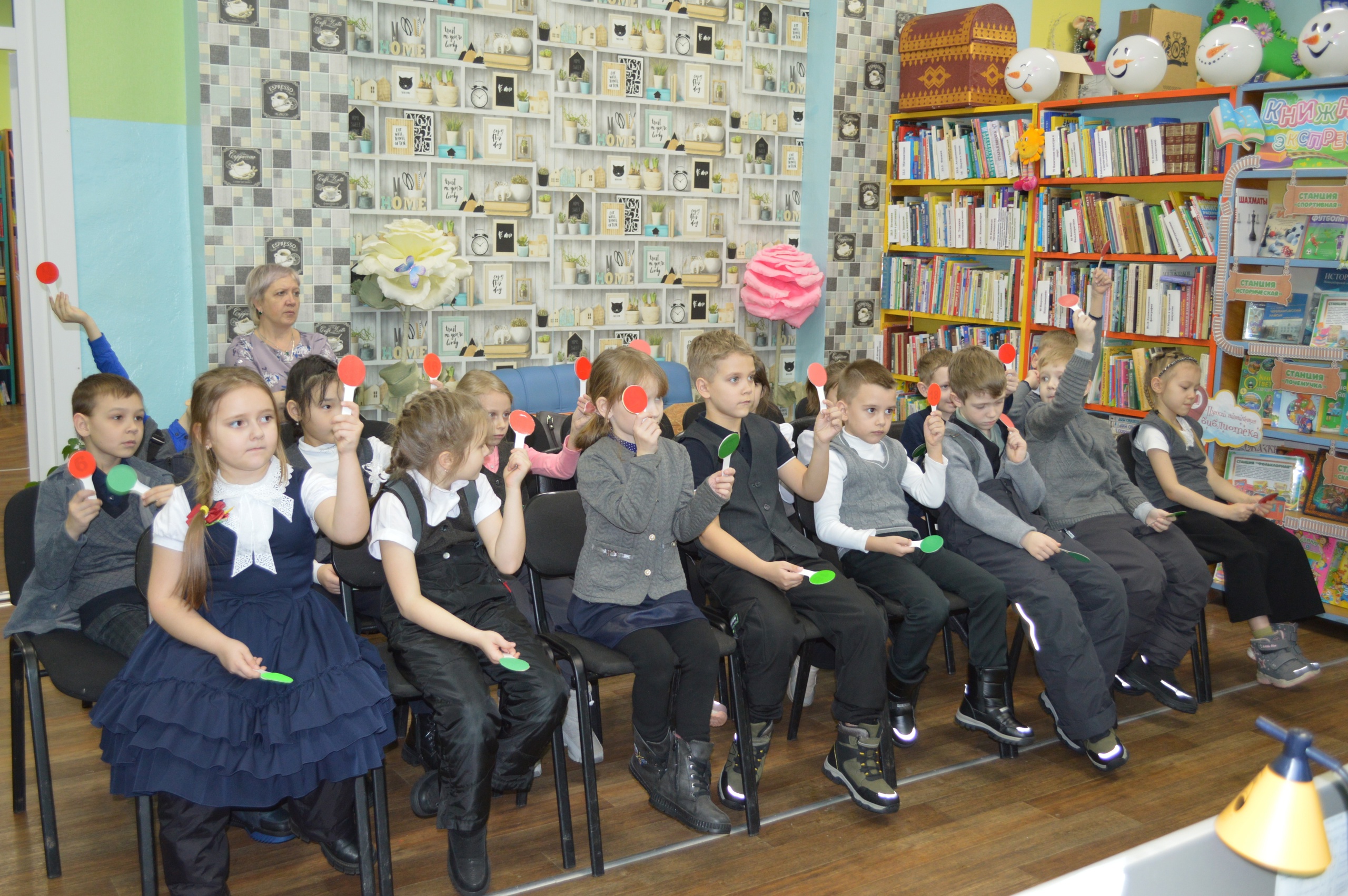 В читальном зале Черепановской центральной детской библиотеки состоялся познавательный час «Школа пешехода "Дорожную азбуку знаем, всегда и везде соблюдаем"», на который были приглашены ученики 1 "Б" класса СОШ №3 г. Черепаново.