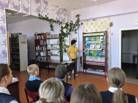Ведущий библиотекарь представила вниманию ребят книжную выставку "О той земле, где ты родился", зачитала описание герба и флага.
