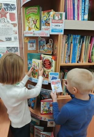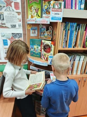 На полках, украшенных осенними листьями, расположились любимые детские книги наших педагогов. Здесь можно найти и волшебные сказки, и приключения, и трогательные рассказы о школьной жизни.
