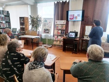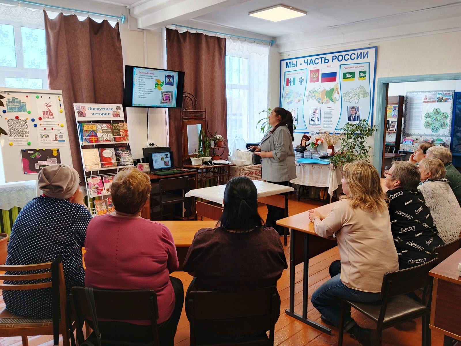 Для женщин поселка был проведён час информации «Лоскутные узоры». Участники мероприятия познакомились с мультимедийной презентацией «История Русского лоскутного шитья» и узнали, что лоскутное шитье было не только способом украшения быта, но и выражением народных традиций и искусства.