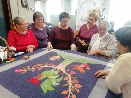 Раиса Федоровна рассказала о нюансах лоскутного шитья, о правильном выборе ниток и иголок, о том, сколько должно быть стежков сантиметре, чтобы результат был идеальным, продемонстрировала свои великолепные работы, а также коллективные произведения участников клуба.