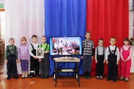 В начале мероприятия библиотекарь рассказала детям, что этот год посвящен защитникам отечества и провела обзор у выставки «Войны священные страницы», затем дошкольники прослушали рассказ о двенадцати земляках, воевавших на фронте и удостоенных высшей награды.