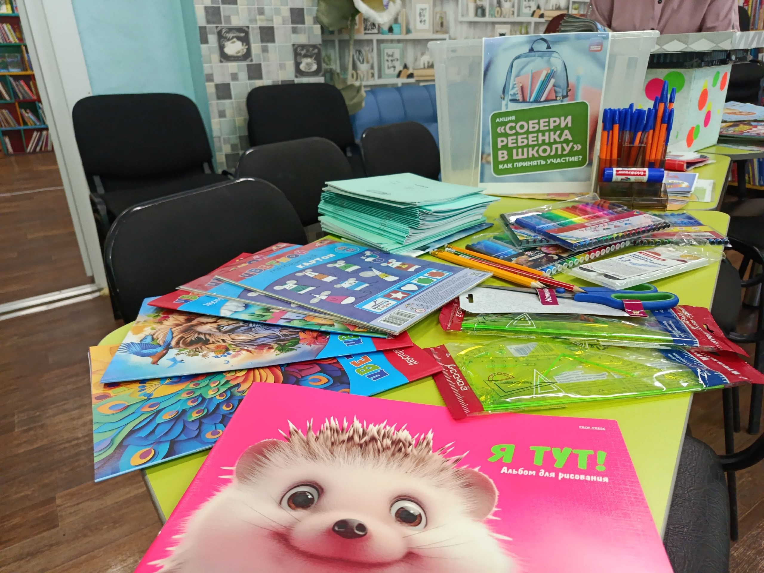 Центральная детская библиотека присоединилась к всероссийской акции "Собери ребенка в школу", организованной партией "Единая Россия". Пункт сбора школьных принадлежностей для нуждающихся детей был открыт на абонементе нашей библиотеки и работал с 31 июля до 28 августа.