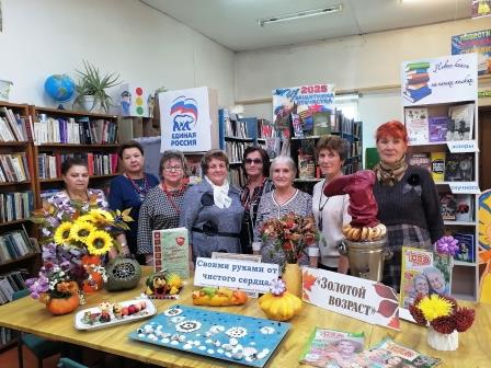 До назначенной встречи библиотекари вместе с женщинами Совета ветеранов сделали осенние поделки для выставки.