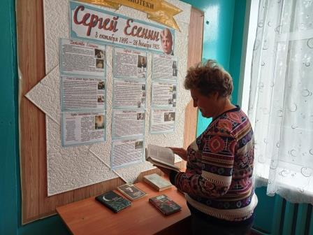 В этот день каждый желающий мог прочесть любимое стихотворение юбиляра. Для мероприятия оформлен стенд-выставка, на котором представлена информация о биографии поэта, его семье и творчестве. Здесь же представлены сборники стихов и проза Сергея Есенина из фонда библиотеки.