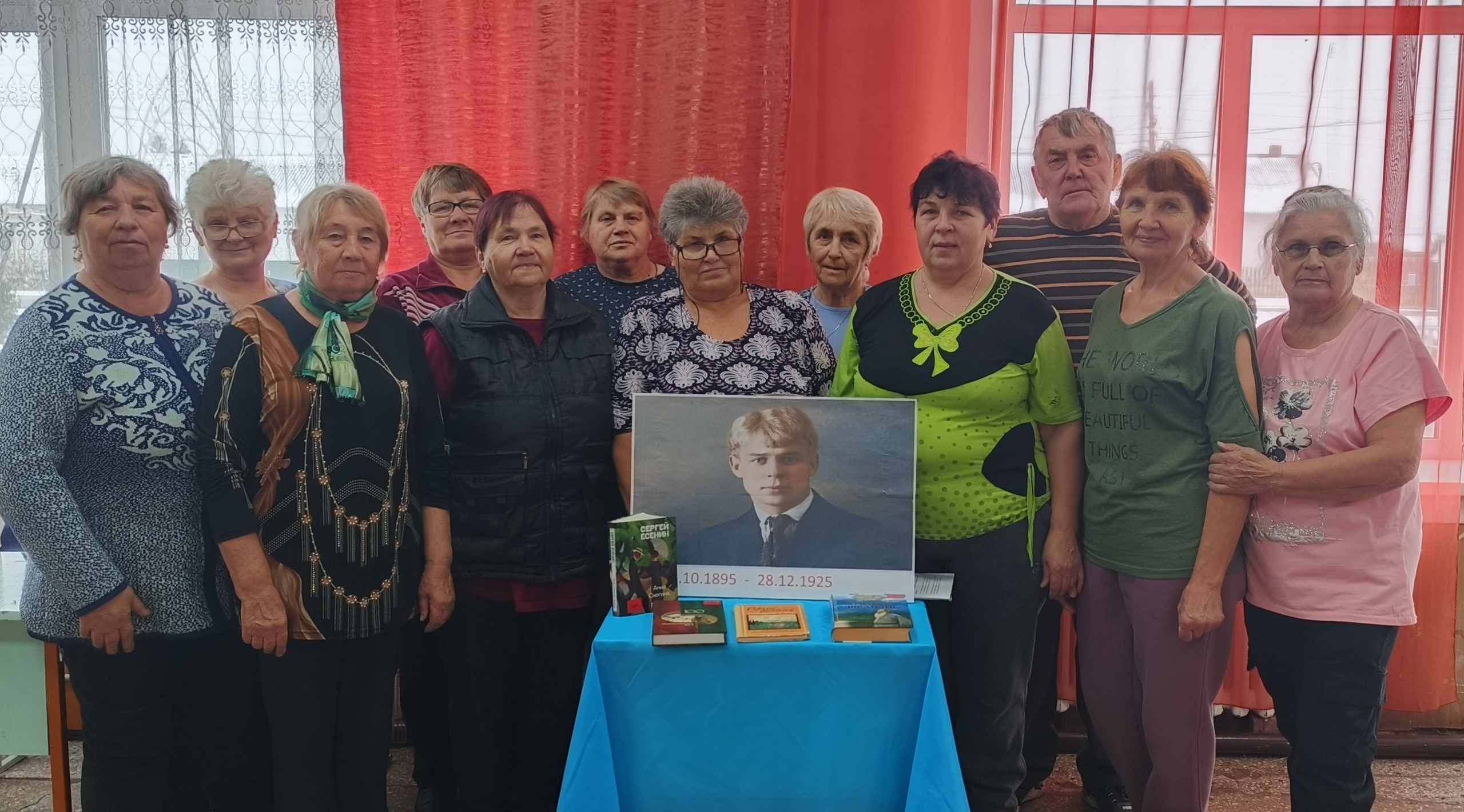 Для участников волонтерского движения "Крепкий тыл" сотрудники Карасевской библиотеки провели литературный час "Сергей Есенин: штрихи к портрету".