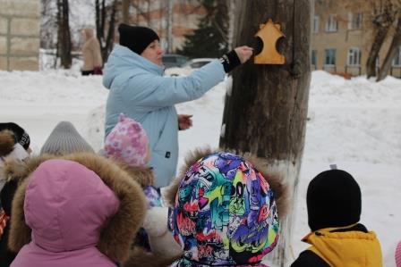 1 декабря для малышей детского сада №7 «Светлячок» был организован познавательный час под названием «Птички-невелички». В ходе мероприятия библиотекарь познакомила детей с птицами, которые остаются зимовать в наших краях, и объяснила, почему важно заботиться о них в морозы. Она рассказала, что кормушки, которые люди развешивают на деревьях и заборах, помогают птицам найти еду. В такие кормушки обычно кладут семечки, несоленое сало и хлебные крошки.