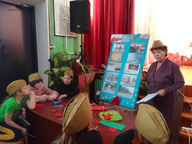 Далее работники клуба организовали мастер - класс, где ребята изготовили красные гвоздики своими руками. Изготовленные цветы возложили у памятника в парке и почтили память солдат минутой молчания.