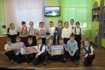 3 февраля В Центральной детской библиотеке состоялся важный и пронзительный исторический час «Город-герой Сталинград!». Ученики 3"В" класса ( классный руководитель Куцевол Е.В.) и 4"Б"класса ( классный руководитель Шушкова С.А.) СОШ №3 г. Черепанова, погрузились в одну из самых героических страниц нашей истории — Сталинградскую битву, которая длилась 200 огненных дней и ночей.