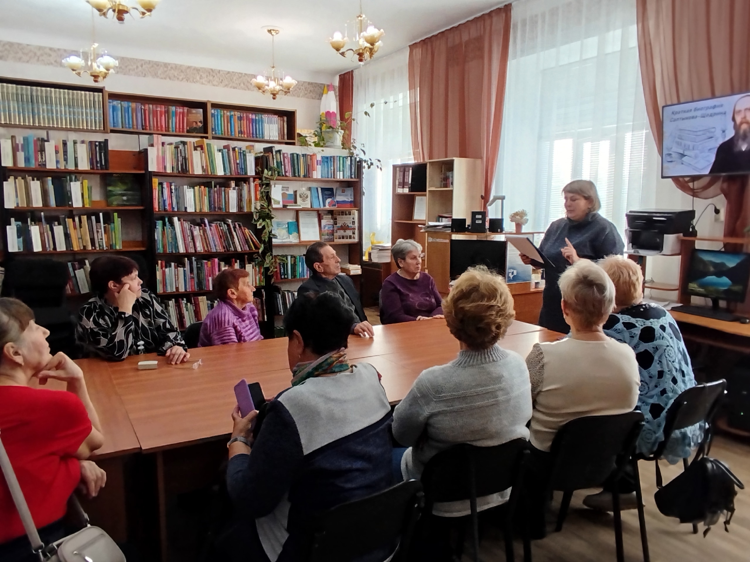 Для членов Союза пенсионеров Черепановского района библиотекарь провела интерактивную игру «По страницам книг Салтыкова-Щедрина», посвященную 200-летию со дня рождения Михаила Евграфовича Салтыкова-Щедрина.
