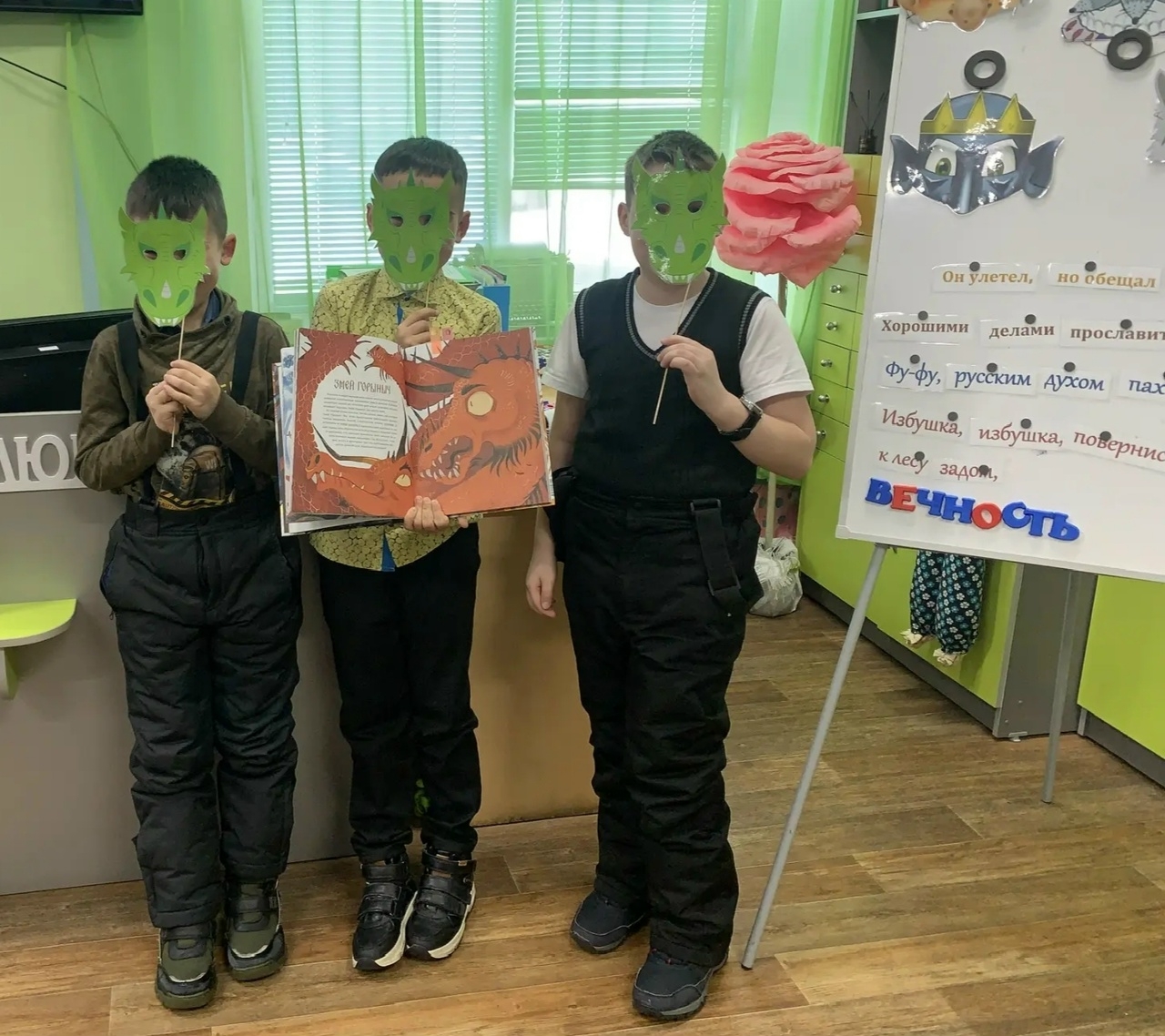 Примерили на себя маски сказочных героев и сфотографировались, вызывая смех и улыбки одноклассников
