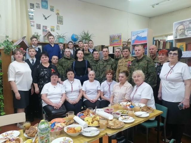 Чаепитием встретили гостей - героев военного братства г. Черепаново. Их рассказ о подвигах, верности друзьям, любви к своей стране и умении делать правильный выбор даже в трудные моменты, а так же напутствия будущим защитникам страны, слушали с большим почтением, впитывая в себя каждое произнесенное слово. Невозможно переоценить важность и значимость встречи с людьми, для которых выражение "Грудью защитить свою Родину", не просто слова, а недавнее прошлое.