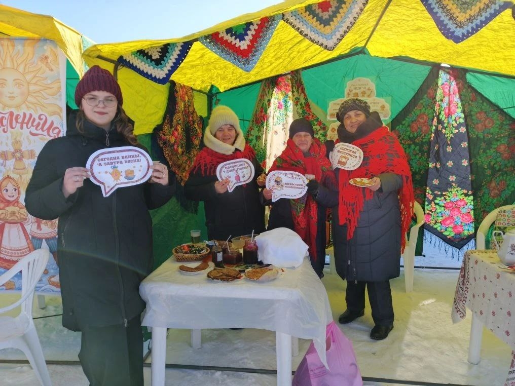 Сотрудники Пушнинской сельской библиотеки и женщины Совета ветеранов п. Пушной не остались в стороне: для гостей и жителей поселка подготовили фотозону, фоторамку и речевые облачка «Масленица - 2026». Также были проведены подвижные игры, отгадывались загадки, пословицы и поговорки о Масленице и Масленичной неделе. Всех угощали блинами с вареньем, конфетами и ароматным алтайским чаем.