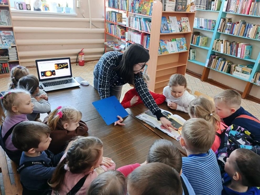 Библиотекарь рассказала юным гостям об истории этого замечательного праздника, о первом человеке, покорившем космос, о легендарных собаках Белке и Стрелке, совершивших успешный полёт, о нашей Солнечной системе, а также о Луне и далёких звёздах.