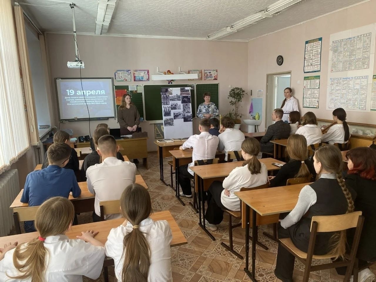 Для старших школьников была подготовлена презентация, фотовыставка, показан отрывок фильма "Помни имя своё", после просмотренного состоялась беседа.