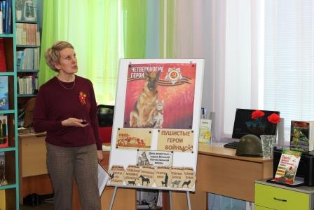 На историческом часе "Четвероногие друзья Победы" читатели центральной детской библиотеки из третьей школы 4 "Б" (классный рук-ль Шушкова С.А.) и 3 "В" (классный руководитель Куцевол Е.В.) классов услышали удивительные истории о пушистых помощниках, благодаря героическим поступкам которых, были спасены десятки, а то и сотни человеческих жизней.